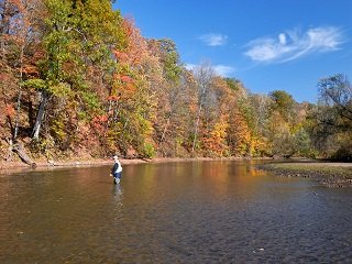 Rivers tend to be slower and clearer in the fall, which means you might have to alter your tackle a bit. I suggest switching to a longer leader, in order to keep from spooking the fish. Once November comes around, trout tend to hold in deep pools, so you’ll also want to switch to wet flies, such as streamers, and perhaps tie on a sink-tip line.